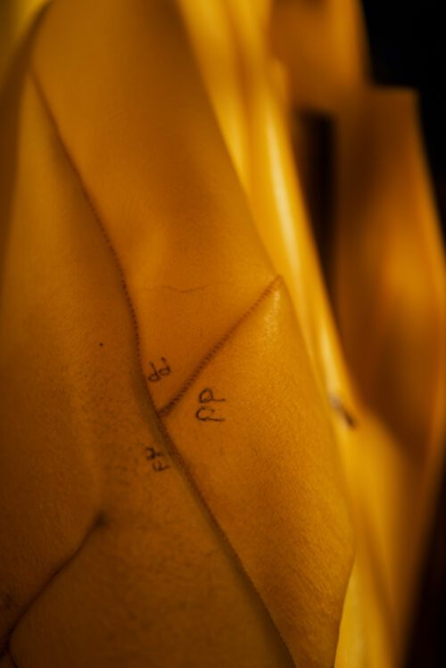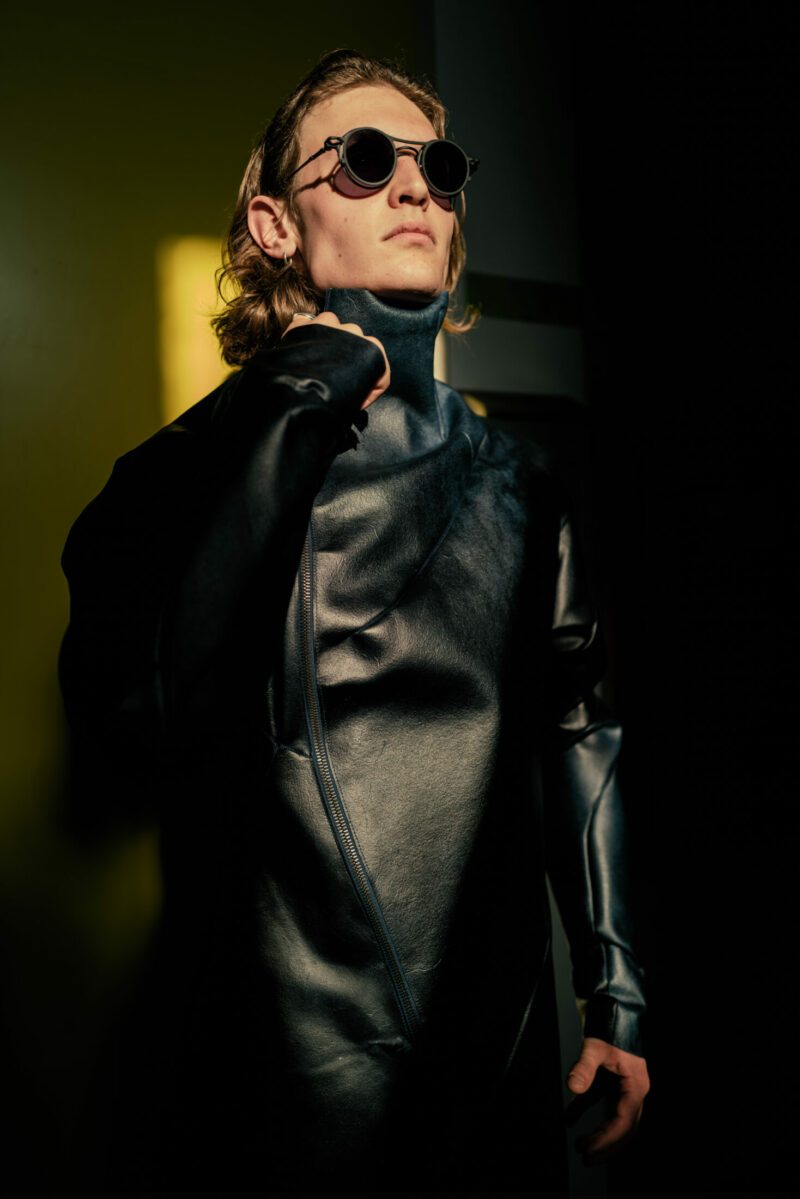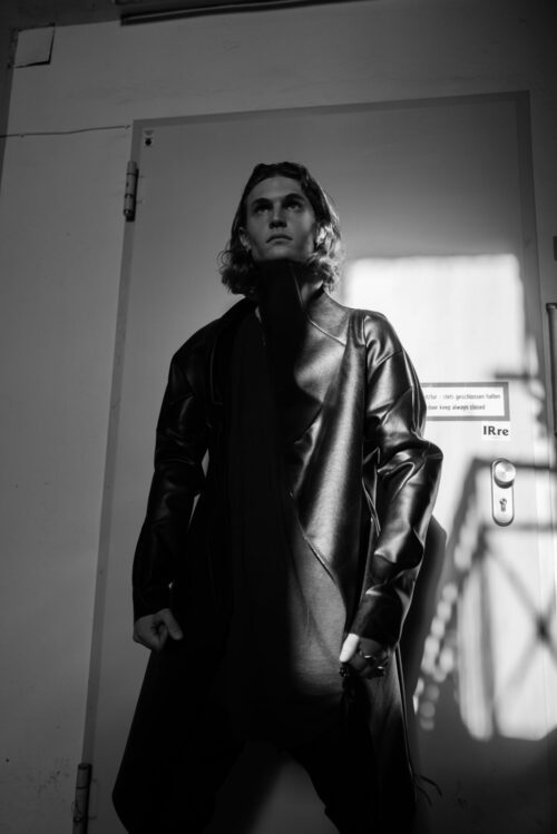 LEON EMANUEL BLANCK is a German Luxury Avant Garde Fashion Designer & Artist, based in Berlin, originally from Heidelberg. LEB plays with seams and the human body, its’ interaction, and reaction with the material. The pattern-making methods are exceptional, based on the idea of the human body not being symmetrical, symmetry within his garments is abolished as well.