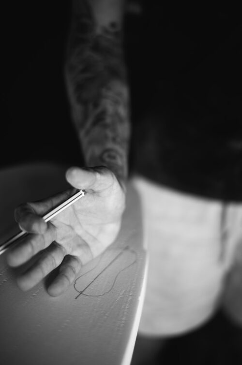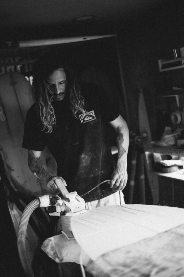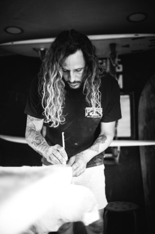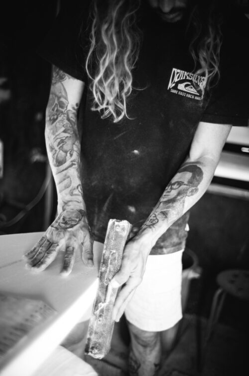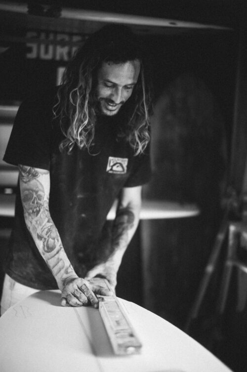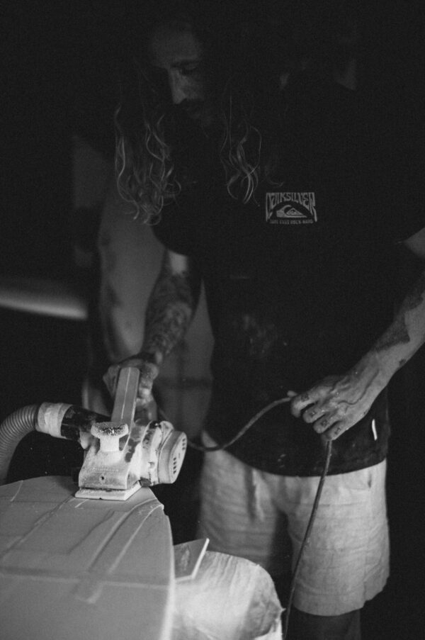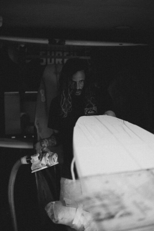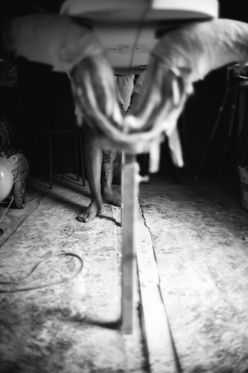 This provided the perfect opportunity to document the art of surfboard shaping which I wanted to do since quite some time and I think Miguel was the perfect match in terms of his appearance and my style of photography.