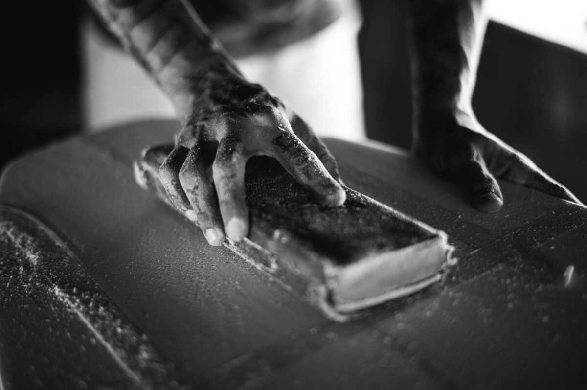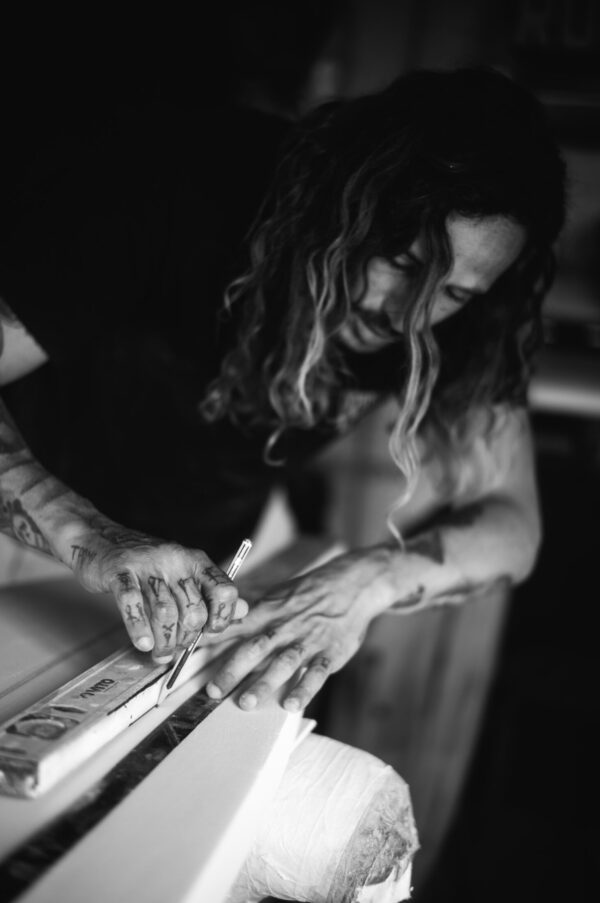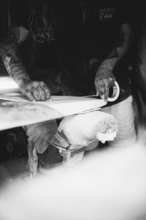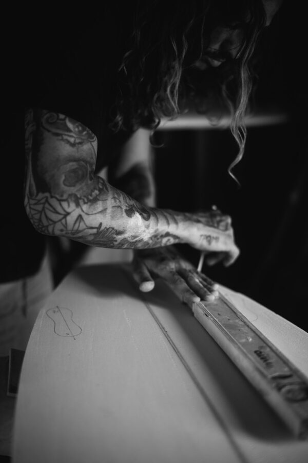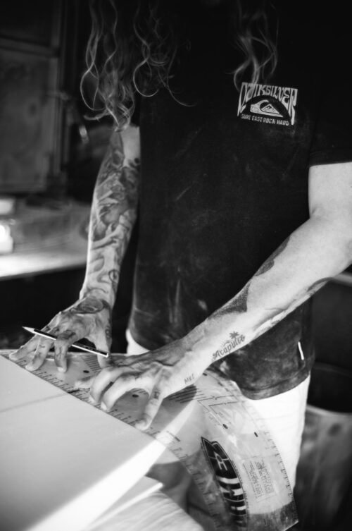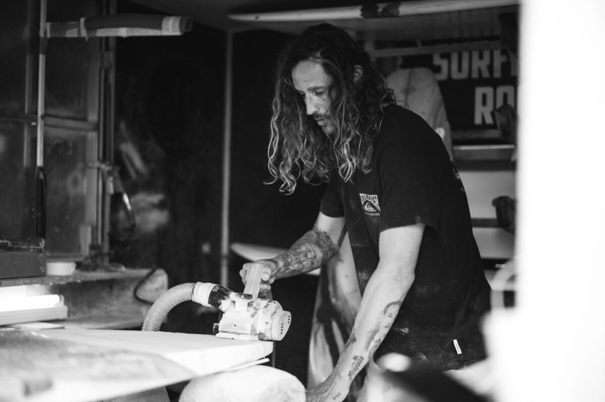 This provided the perfect opportunity to document the art of surfboard shaping which I wanted to do since quite some time and I think Miguel was the perfect match in terms of his appearance and my style of photography.